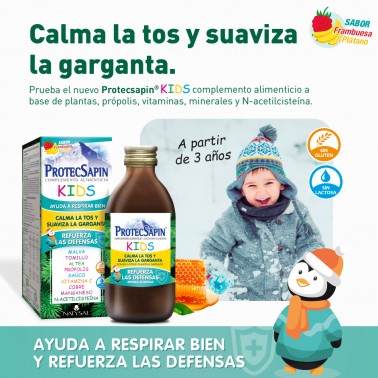 ProtecSapin® KIDS ayuda a respirar bien, calma la tos y suaviza la garganta. REFUERZA LAS DEFENSAS.